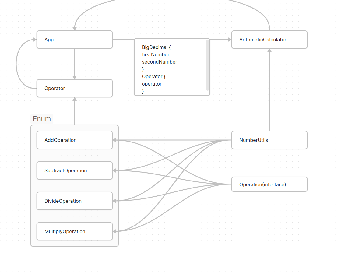 이제 입력받은 값(BigDecimal) 과 Operation을 ArithmeticCalculator 에게 매개변수로 보내게 된다.