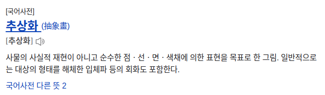 사전에서 추상화의 뜻을 검색을 해본다면 사물을 전체를 표현하지 않고 점, 선, 명, 색체만 표현을 해서 그린 그림이라고 나와있다.